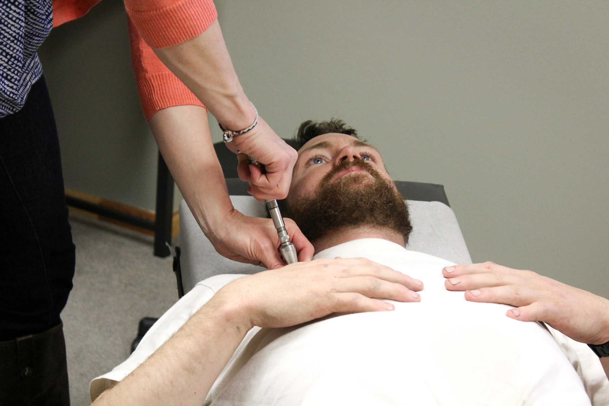 This treatment combines IASTM with Functional Movement. During FAKTR treatment, the patient will be moving in specific ways to stretch, provoke or challenge the tissues. Treating an area takes around five minutes and the results of pain relief or freedom of movement can be felt instantly. Even chronic conditions (listed above) can be resolved within a few visits with FAKTR.